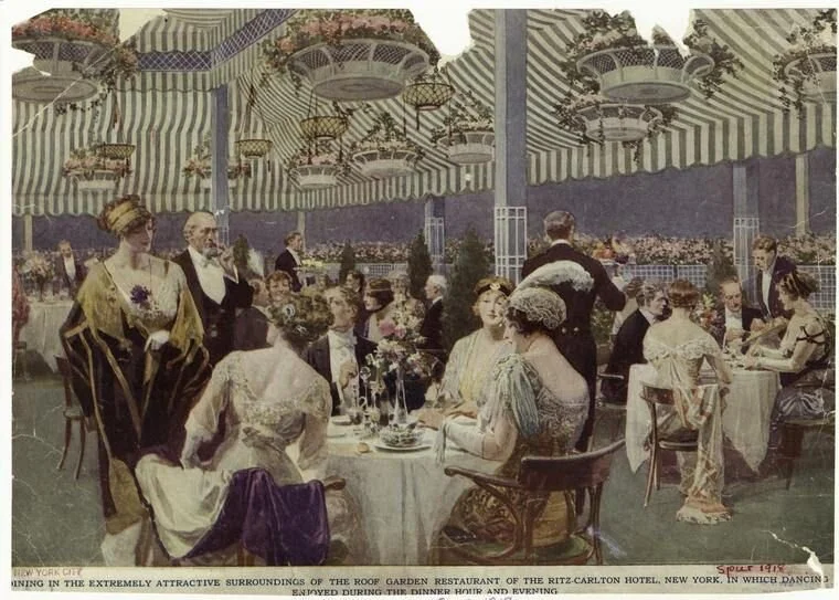 Dining on the roof garden restaurant at the Ritz-Carlton Hotel, New York City, 1918, from the Collection of the New York Public Library